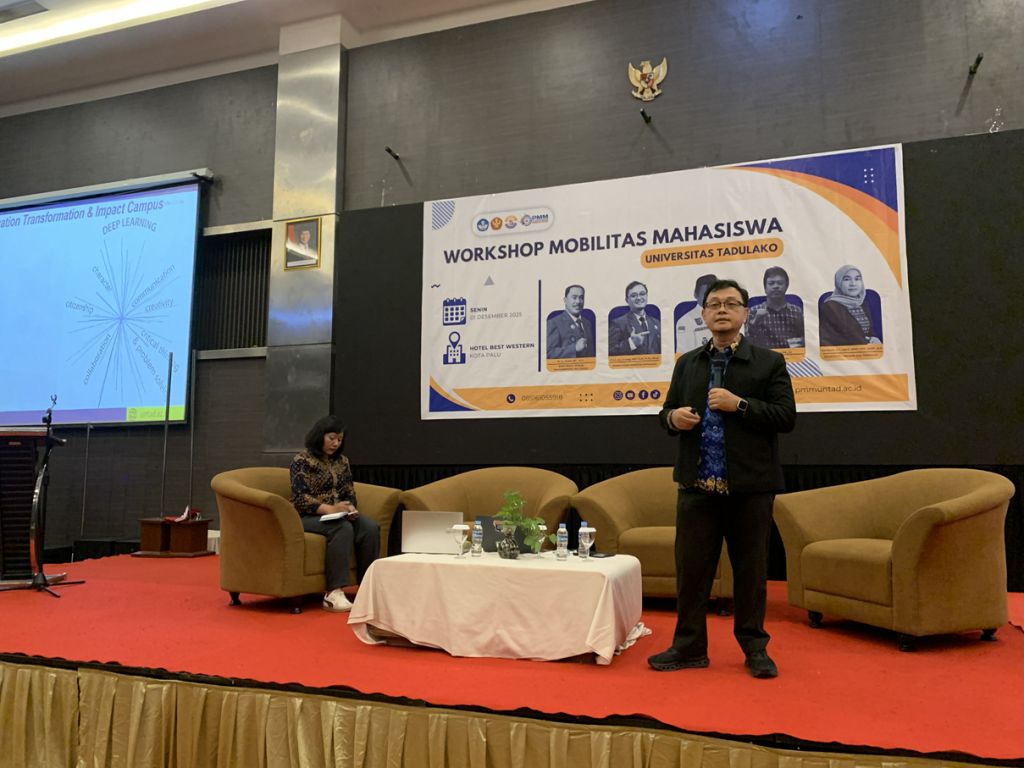 Workshop Mobilitas Mahasiswa dilaksanakan pada 1 Desember 2025 di Hotel Best Western Palu oleh Pusat Mobilitas Mahasiswa (PMM) LPPM Universitas Tadulako. Mobilitas Mahasiswa merupakan salah satu program strategis Universitas Tadulako dalam mengimplementasikan kebijakan Kampus Berdampak. Program ini memberi kesempatan kepada mahasiswa untuk mengikuti aktivitas pembelajaran lintas fakultas, lintas institusi, dan bekerja sama dengan berbagai mitra industri, sekolah, pemerintah, desa, serta komunitas. Dosen sebagai pembimbing dapat berkontribusi dalam upaya Untad Berdampak.